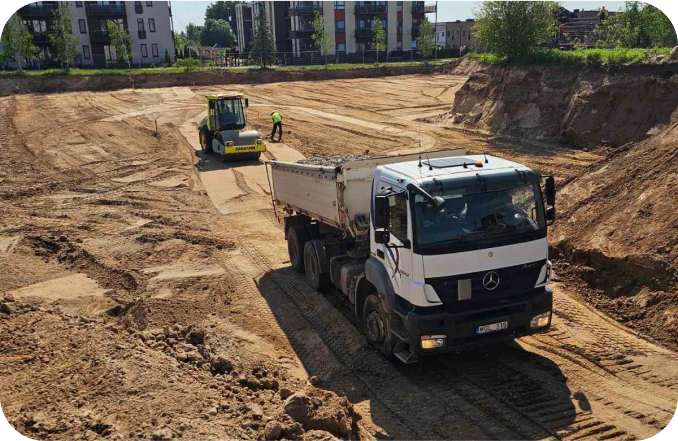 Siūlome platų paslaugų spektrą - visi žemės darbai, pastatų griovimas ir utilizavimas, pagrindo įrengimas, birių medžiagų tiekimas, sniego valymas. Kiekvieną projektą atliekame kruopščiai ir laiku užtikrindami aukščiausią kokybę.